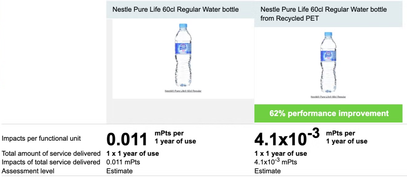 To identify the environmental hotspots of PET water bottles and inform design improvements. For the PET bottle, I have chosen the Nestle Pure Life 60cl Regular Water bottle